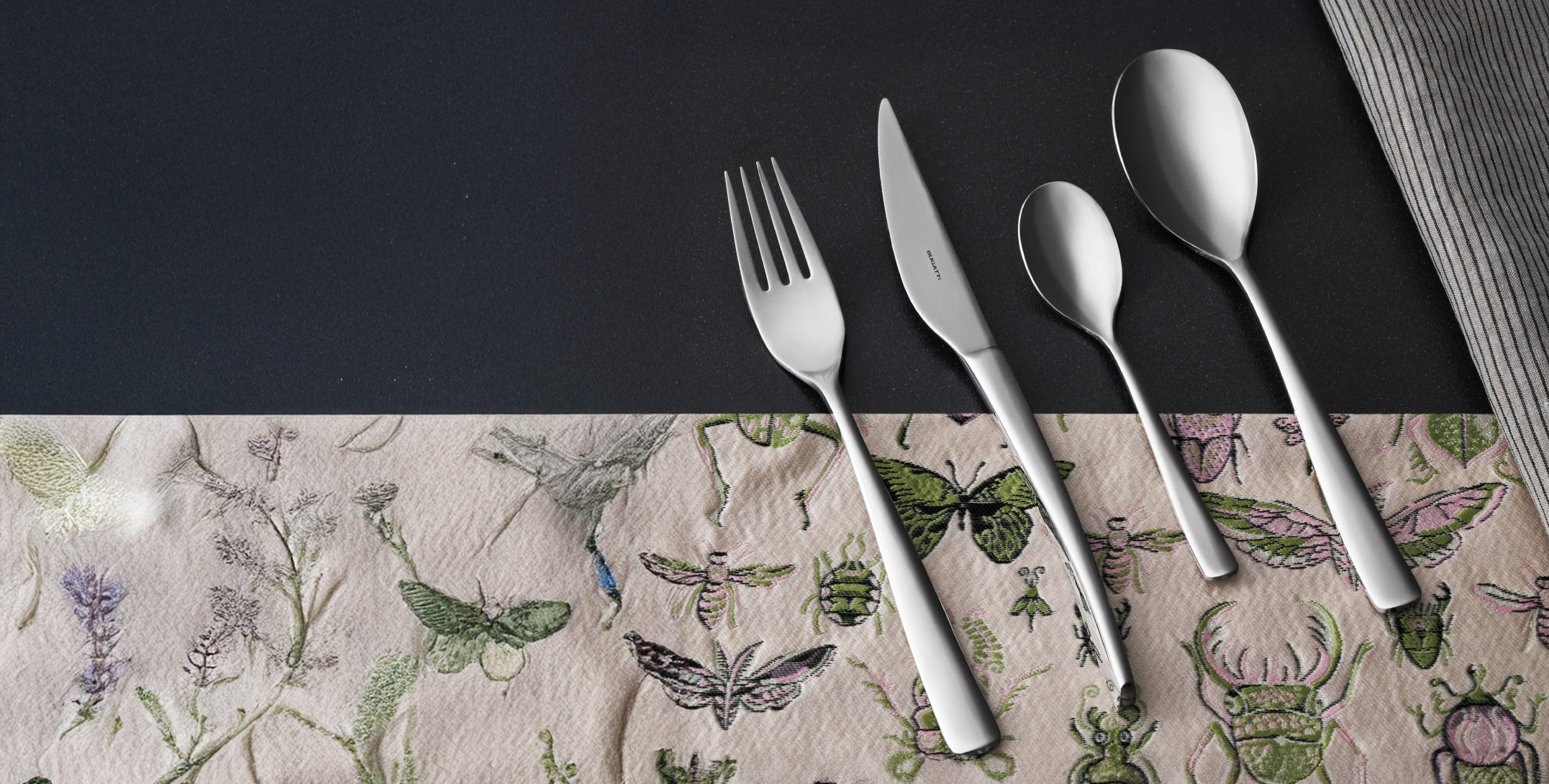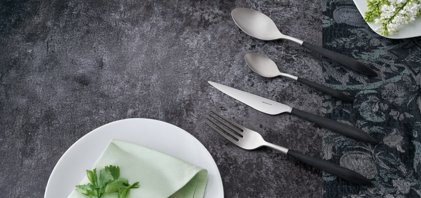Los cubiertos no solo son un accesorio imprescindible en el hogar, sino también una joya preciosa capaz de decorar tu mesa de una manera única, aportando elegancia o un toque contemporáneo según tu estilo. Bugatti diseña y fabrica juegos de cubiertos desde 1923, y conocemos el placer que puede brindar una mesa cuidadosamente preparada y de alta calidad.