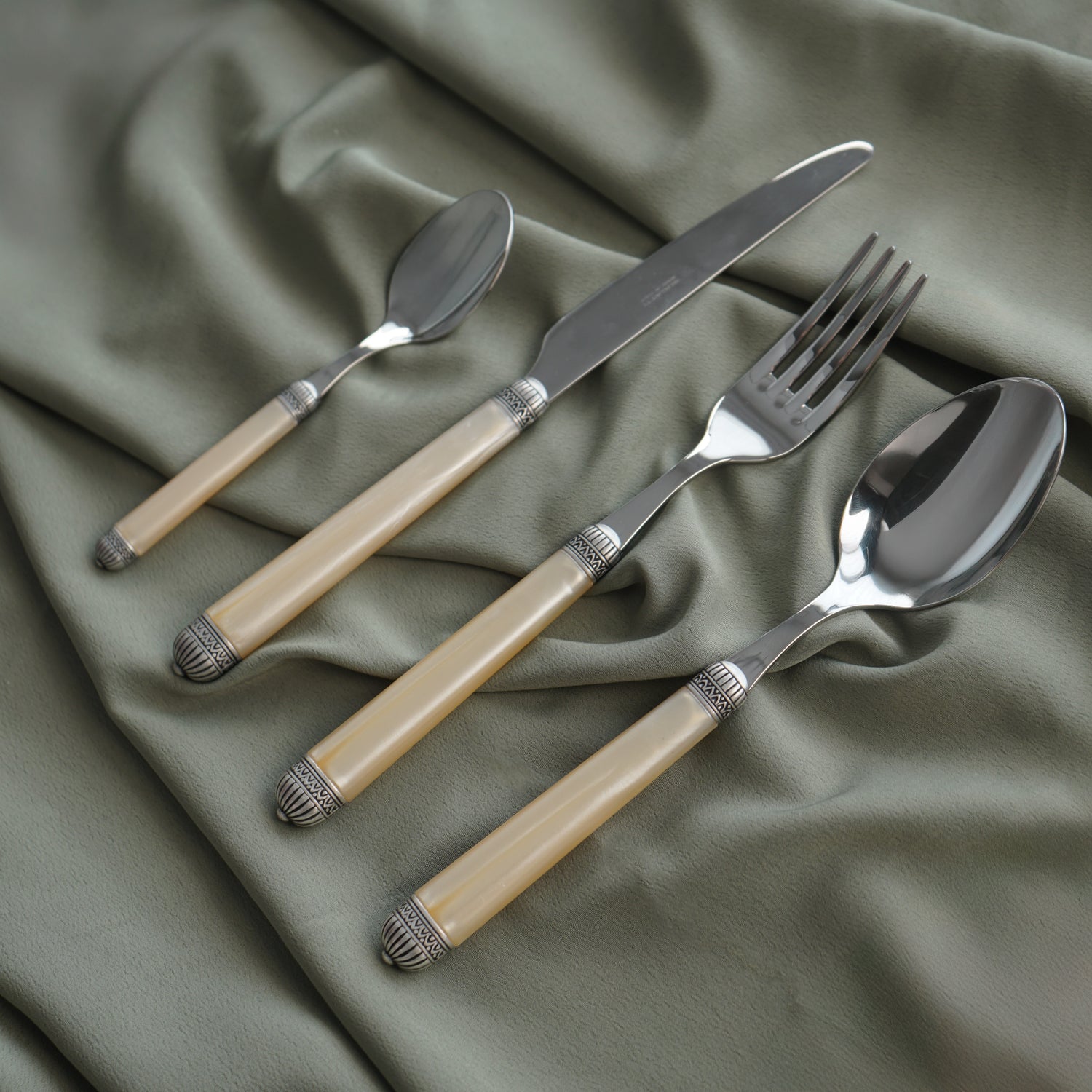 Cubiertos Dorico c/mango marmolado Setx24