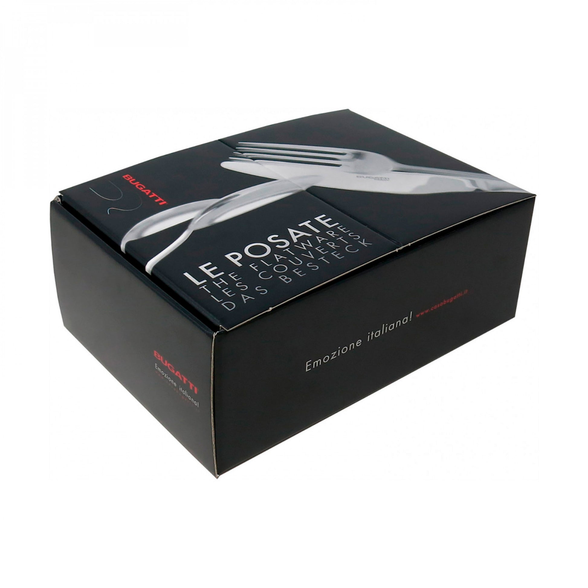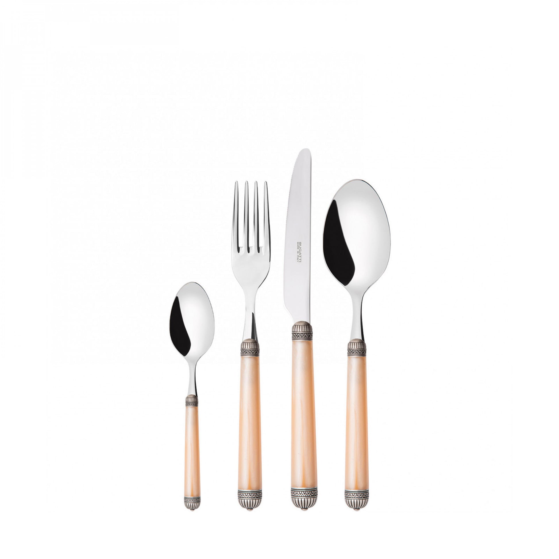El set de 24 piezas está compuesto por: 6 cucharas de mesa, 6 tenedores de mesa, 6 cuchillos de mesa, 6 cucharas de café.